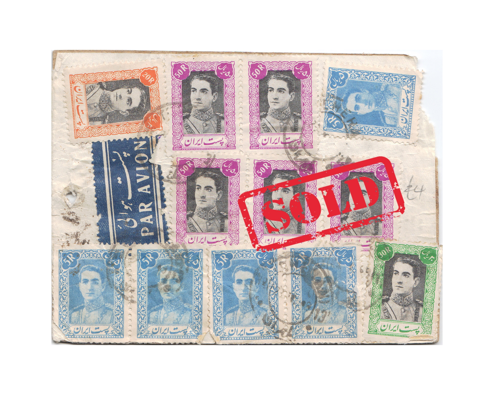 Airmail Postal Tag with 5 copies of 50 rial
